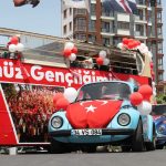 Gençlik şarkıları ve rengârenk gösterilere sahne olan Kartal’da bayram finali, sokakları dolduran vosvos ve motor konvoyları ile yapıldı. Kartallı vatandaşların ilgiyle izlediği “19 Mayıs” temalı etkinlik ile kutlamalar, renkli görüntülere sahne oldu. Kartal Belediye Başkanı Gökhan Yüksel de konvoya üstü açık gezi otobüsü ile katıldı. Başkan Yüksel, Kartallı Kazım Meydanı’ndan başlayarak Kızılay Bulvarı boyunca evlerinin balkonlarından bayrak sallayıp, sevinç gösterisinde bulunan vatandaşları selamladı ve 19 Mayıs Gençlik ve Spor Bayramı kutlamalarına ortak oldu. Sokaklarında Başkan Gökhan Yüksel’i ve konvoy araçlarını gören genç, yaşlı ve çocuk binlerce Kartallı vatandaş, milli bayram gururunu doyasıya yaşadı.